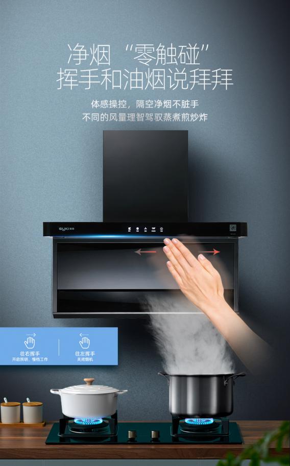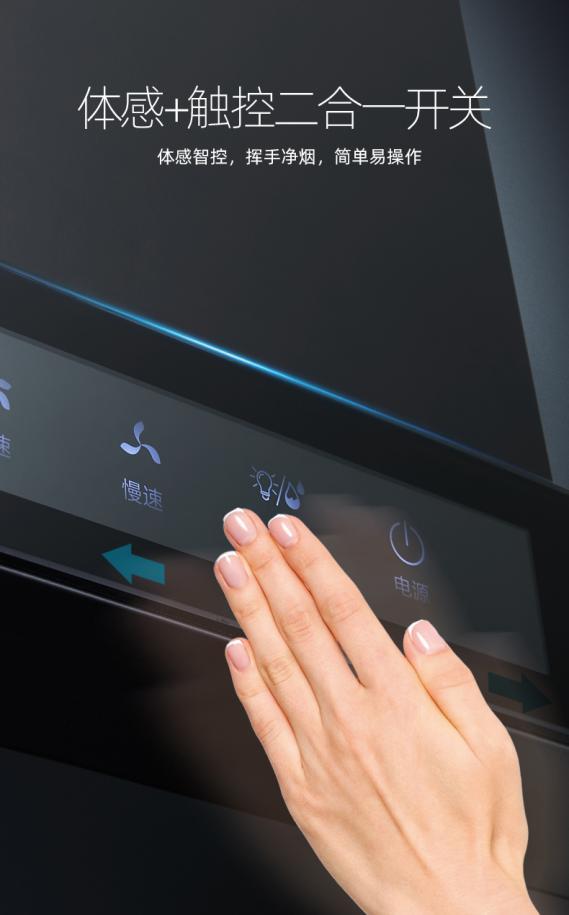 你还在因为做饭时,无法腾出双手来不及开烟机,而导致厨房满是油烟困扰吗?索奇L310烟机体感操控,无需触碰烟机,手轻轻一挥烟机立即启动。化繁为简往右挥手开启烟机,往左挥手关闭烟机。还可操控不同风量,轻松驾驭煎炒炸煮,隔空净烟不脏手!索奇L310烟机,让你远离双手油腻~