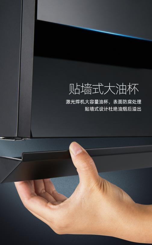 索奇L310烟机采用炫酷的黑晶玻璃面板,整体呈现简约高端大气,且耐高温易清洁,轻轻一抹表面洁净如新。细心的R圆角设计,350mm完美身段紧贴橱柜省空间的同时还不易碰头。