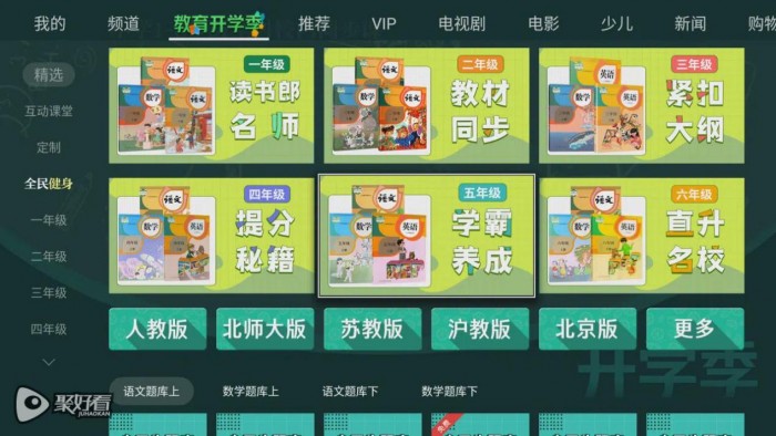 VIDAA电视“教育开学季”频道覆盖了少儿、小初高全年级学科课程,包含学前启蒙、幼小衔接、校内同步、知识拓展等多种内容,其中校内同步课程,依据教育部新编小初高教材课程标准,匹配课本内容语数英全学科,同步全国主流教材版本。汇聚名校资深教师倾情打造的头部教育资源,为孩子提供全面专业的全龄在线教育平台。