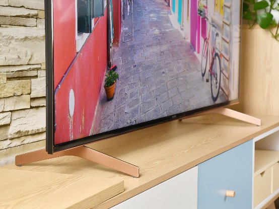 这款电视在外观设计上相当与众不同,比如其采用了高贵典雅的琥珀金配色。独特的配色不仅能带给用户时尚奢华的视觉观感,搭配钻石切割的边缘,采用CNC一体成型工艺,无任何焊接,显得非常有质感。这种工艺最大的好处是无接缝更美观,而且难度非常大,因为制作成本很高,只有大品牌的汽车厂商会应用,而且,清理起来也方便。如果家里客厅有装射灯,边框能够在灯光下熠熠生辉,非常拉轰。当然,富有格调的琥珀金也能与不同的家庭环境进行匹配,与各类能与家庭装修环境都能无缝融合。