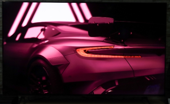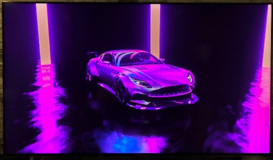 无论是游戏还是电影,往往画面的变化速度都非常快,画面中物体会呈现出高度移动的状态。如果电视的动态画面表现不佳,则很容易出现出现动态画面模糊、撕裂的情况。X9100H的刷新率高达120Hz,配合索尼独有的明锐动态技术,通过X1芯片侦测动态的区域,并向这些区域智能插入黑帧,在提升电视帧数让动态画面更流畅的同时,让画面一直保持在较高的亮度。可以看到,虽然画面通过背景模糊来体现汽车的高速移动状态,但车身上的文字和细节都保持了很清晰的细节,画面也没有因为插入黑帧而变暗,这让X9100H能够轻松应对动态画面。