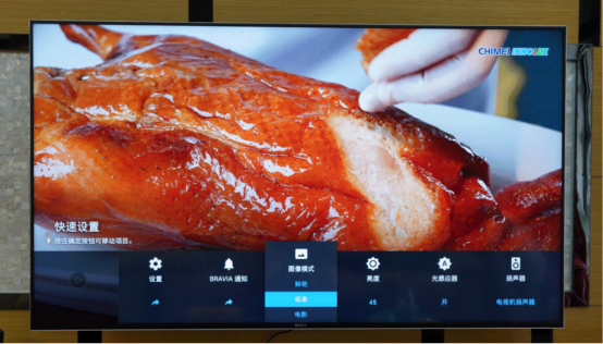 6种图像模式下的色彩和色温调节也有不同,大家可以根据观看的不同内容来选择不同的模式。个人感觉鲜艳显示模式更能突显食物诱人的色彩