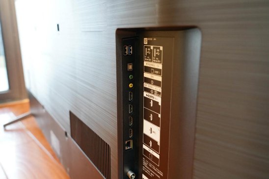 左侧电视机接口一览,HDMI接口共4个,2号和3号为HDMI 2.1接口、其中三号HDMI支持回传音频(比如楼主家里的BOSE V35,可使用三号HDMI在看电视时进行音频信号回传给BOSE主机进行5.1家庭影院发声,非常实用的功能哦)还有两个USB 接口,一个2.0一个3.0