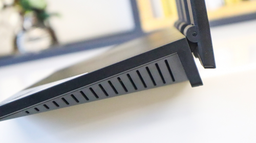 从侧面能看到:华为路由AX3 Pro两旁的散热孔呈三角状发散的排列,保障了路由器的散热效果,更加持续稳定的提供Wi-Fi信号。