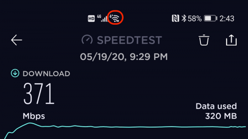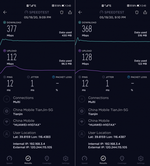 接下来,小编采用SPEEDTEST进行网速测试。从上图可以看到:华为路由AX3 Pro跑出了377Mbps的巅峰网速,比我家300兆宽带上限还要高,真的是太给力了!