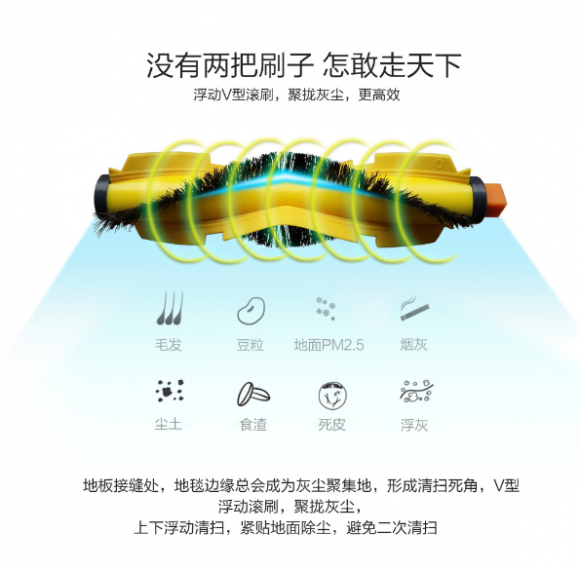 术业有专攻,针对不同的灰尘,斐纳TOMEFON-TF-D60扫地机器人设计了两种清洁形态进行除尘。通过对环境的扫描,策划出针对该房间所进行的特殊‘弓’形清扫模式,再与浮动V型滚刷相配合,深入死角缝隙处进行上下浮动清扫除尘。