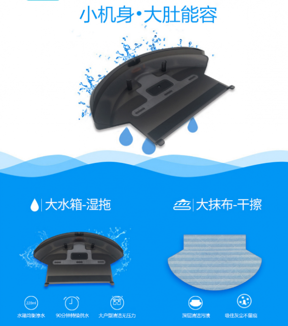 如同人工拖地一样干净的斐纳TOMEFON-TF-D60扫地机器人,在湿拖方面有容量220ml的水箱能进行均衡渗水,哪怕面对大户型的房子也能无压力的进行持续90分钟的供水清洁。除此还包含一块大抹布进行干擦,能够有效吸住灰尘不留痕,更加深层度的清洁污渍,轻易成就智慧湿拖。