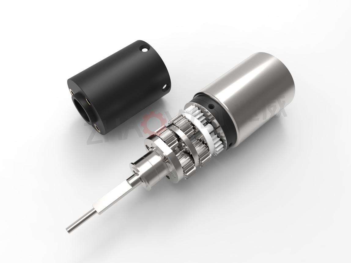 众所周知,扫地机的齿轮电机的齿轮的模数都介于0.15~0.5mm之间,属于小模数齿轮,这也要求减速器的寿命高,对噪音更敏感,由于齿宽限制,使用斜齿轮对噪音改善帮助不大,重心放在齿轮参数优化,同时要在减速器内部增加离合机构,当机器跌倒减速器受到外接冲击时,齿轮能得到保护。而行星齿轮可以实现小空间大传动比,伺服单元要求小回差,输出级接近零侧隙啮合,行星轮既和太阳轮啮合又和内齿轮啮合,装配困难。