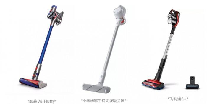 参与本次测评的是三款吸尘器分别是戴森V8 Fluffy手持无线吸尘器、小米米家手持无线吸尘器、飞利浦S+无线吸尘器。