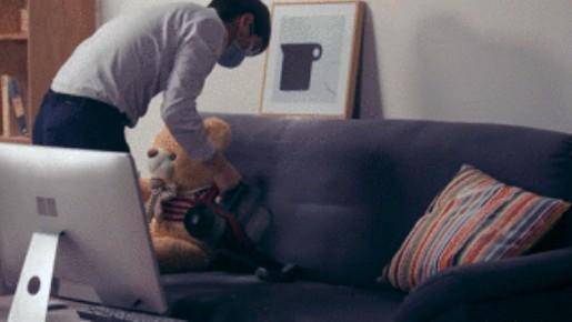 这一次,小孙使用的吸尘器是小米米家手持无线吸尘器,作为一个男孩子,小孙打扫起来真的是非常细心,靠垫背面、沙发缝里、玩具熊的毛都没有放过,仔细地吸了半天。最终花了16分49秒,小孙才打扫完毕。