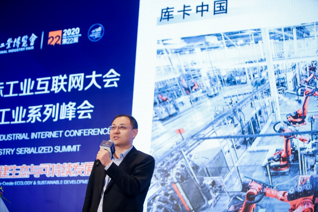 (库卡中国首席执行官王辉发表主题为《库卡机器人互联之路》主旨演讲)