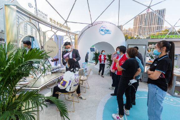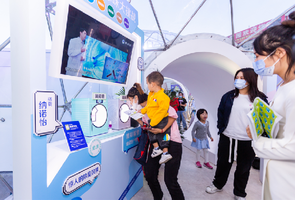 纳诺怡体验馆非常显眼,远远望去两个透明球科技感十足。走近体验馆,领取集章卡后就可以开启净美生活体验之旅!