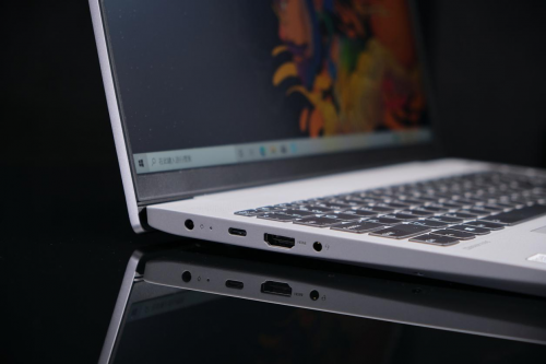 接口方面,联想小新15 2021的左侧由上至下依次为电源接口、Type-C接口、HDMI接口以及耳机接口。