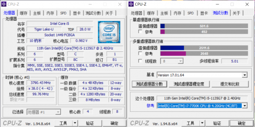 11代的桌面平台虽然最近才发布,而笔记的11代要发布的早很多,酷睿 i5-1135G7 4核心8线程的规格,成绩已经很接近同规格的的桌面级i7了。