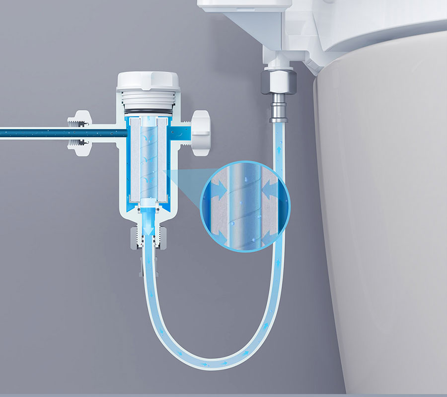 这款产品依然坚持外置PP棉过滤器,可以过滤20μm的水中杂质,满足本土卫浴用水的特殊性,使过滤后的水比沐浴用水更卫生干净。