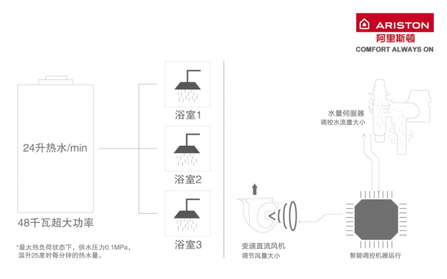 为充分照顾大户型用户对于生活日常热水使用的需要,阿里斯顿HSL有容系列燃气热水器在功能上分别从两大方向入手。首先,产品自身拥有48千瓦超大功率,每分钟可提供24升热水,可满足3个卫生间同时沐浴,或者一个卫生间浴缸洗另一个卫生间沐浴等多样化的居家用水需要,以此完美解决三代同堂家庭的需求,让大家足不出户也能享受到五星级酒店般的澎湃沐浴体验。其次,阿里斯顿HSL有容系列燃气热水器采用双阀精控,有效实现了恒流恒感。通过搭载的双温感系统,可以时刻监测进出水温,再通过智能CPU快速精准运算,燃气比例阀和自动水量调节阀双向联动,进而做到了电子级精准调控出水温度,即便家人成员增多用水需求增多,亦能保证大家拥有舒适的沐浴体验。