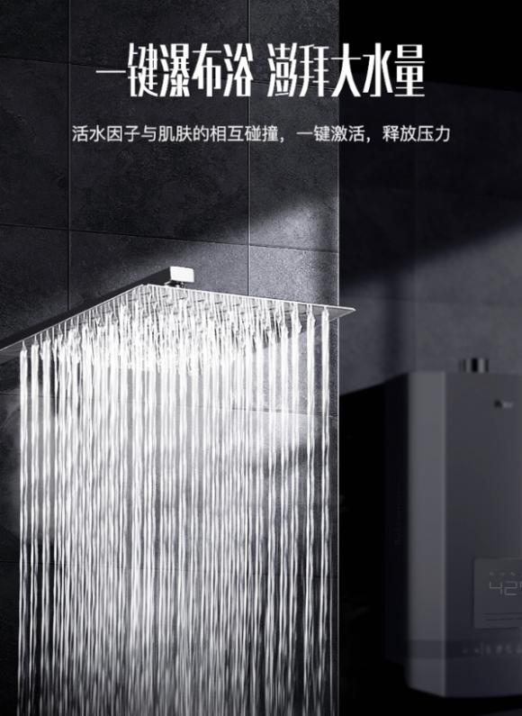若是喜欢大水流冲击按摩的用户,一定会爱上华帝燃气热水器i12057的“瀑布浴”功能,启动水压低至0.01MPa,通过离心旋风液轮、陶瓷旋转中轴、直流无极变频电机、灵敏CPU四大核心配置的相互作用下,水流量可提升70%以上,动力澎湃。